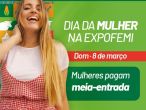 A ExpoFemi 2026 terá uma condição especial no próximo domingo (8) para celebrar o Dia Internacional da Mulher. Nesta data, todas as mulheres pagarão meia-entrada, com ingresso promocional no valor de R$ 25,00.