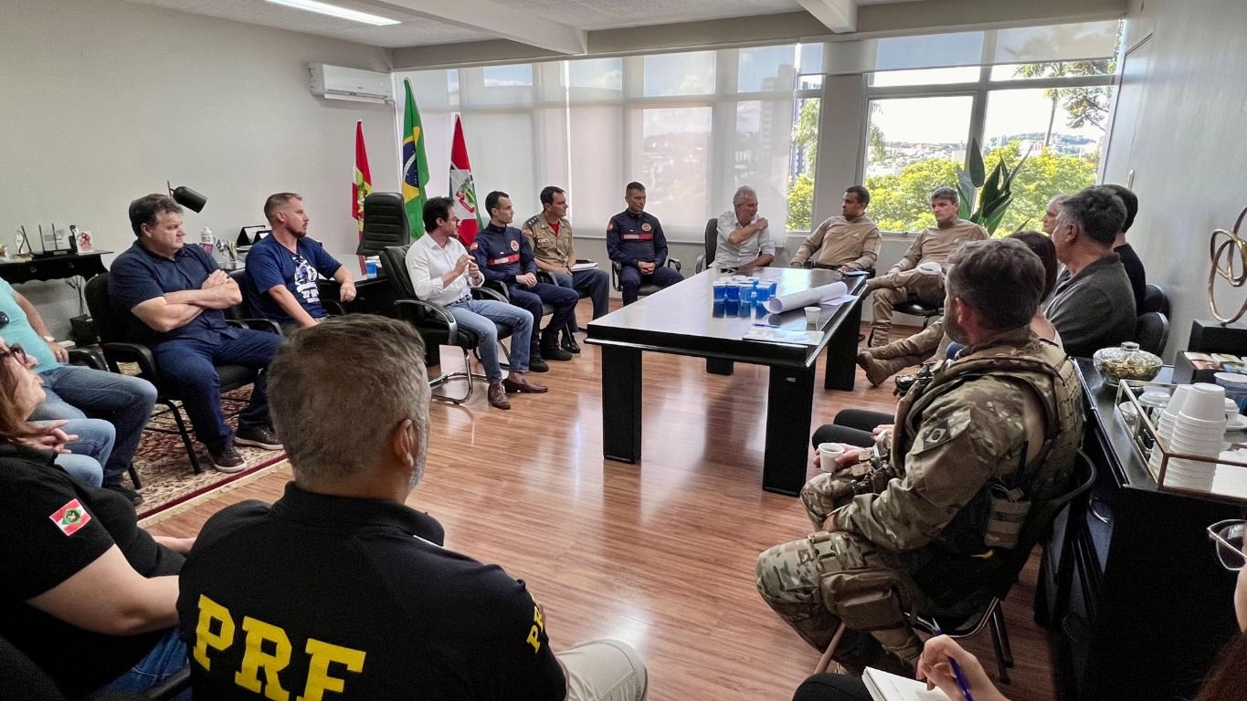 Representantes das forças de segurança e das comissões organizadoras da ExpoFemi 2026 se reuniram nesta segunda-feira (26), na Prefeitura de Xanxerê, para alinhar ações de segurança, trânsito e estacionamento para a feira, que será realizada de 28 de fevereiro a 8 de março, no Parque de Exposições Rovilho Bortoluzzi.