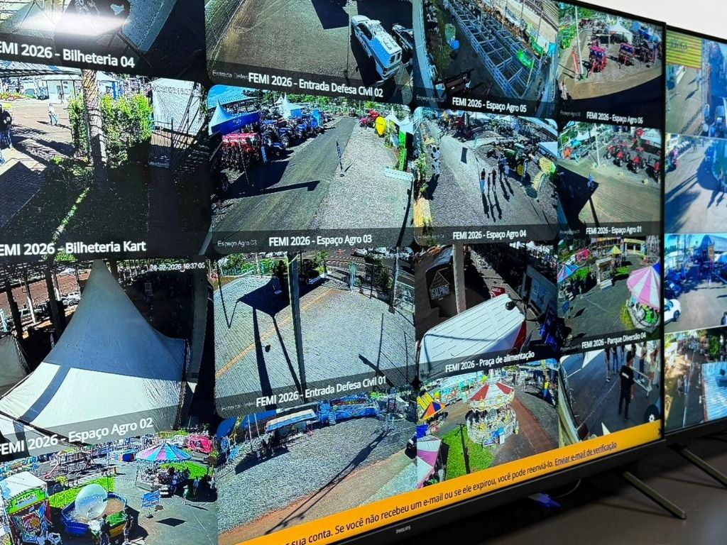 Uma das novidades da ExpoFemi neste ano é a implantação de uma central de monitoramento com câmeras espalhadas por todo o Parque de Exposições Rovilho Bortoluzzi. A estrutura funciona em tempo real e amplia o controle e a segurança durante os dias de evento.