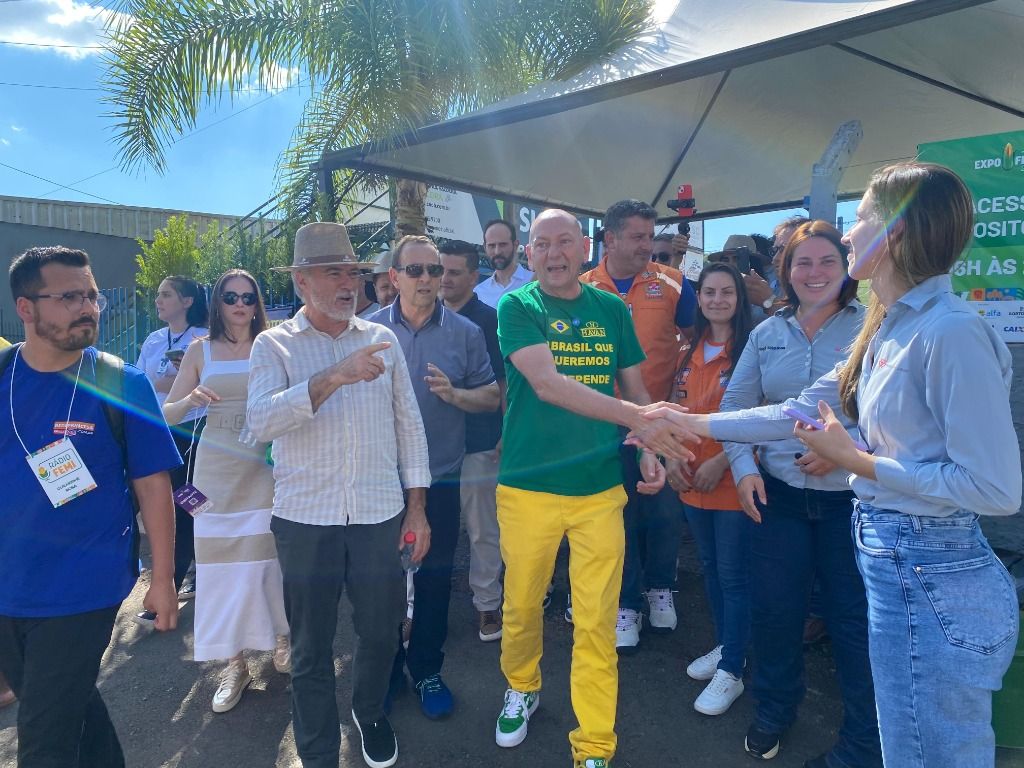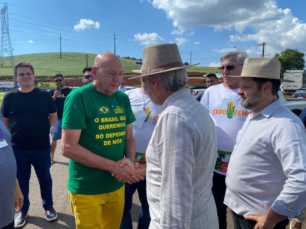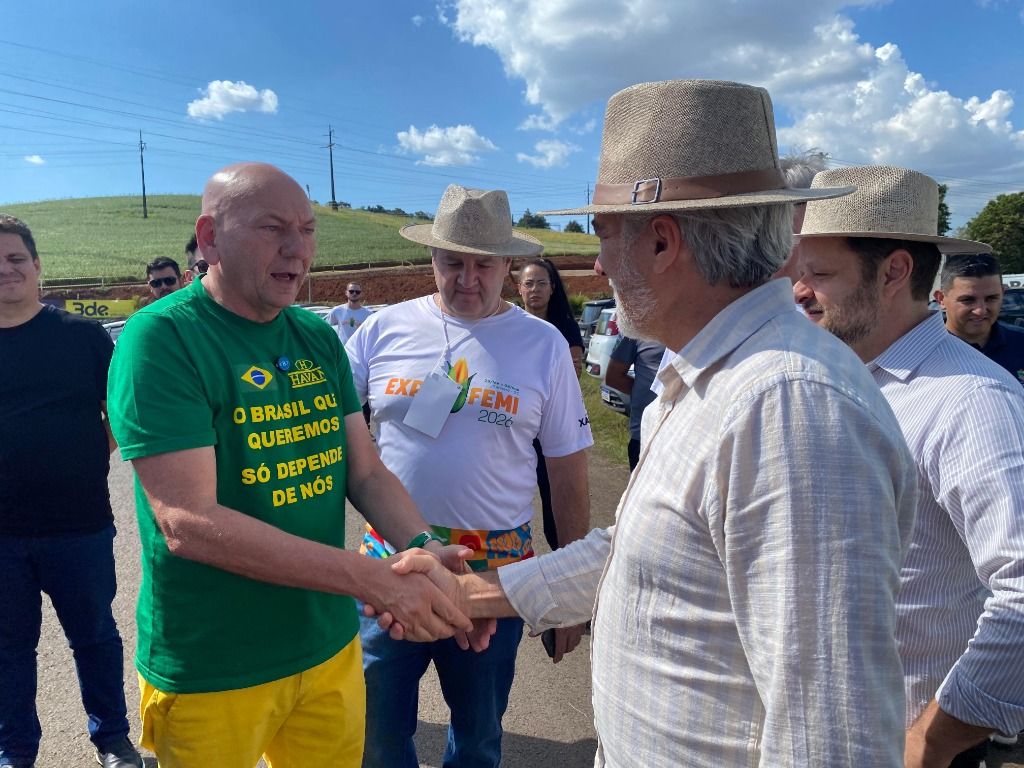 Durante a visita, o empresário percorreu os pavilhões, conversou com expositores e interagiu com o público que prestigiava a ExpoFemi. A passagem pela feira foi marcada por registros com visitantes e pela valorização do potencial econômico da região Oeste de Santa Catarina.