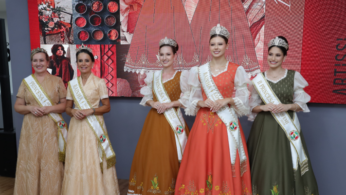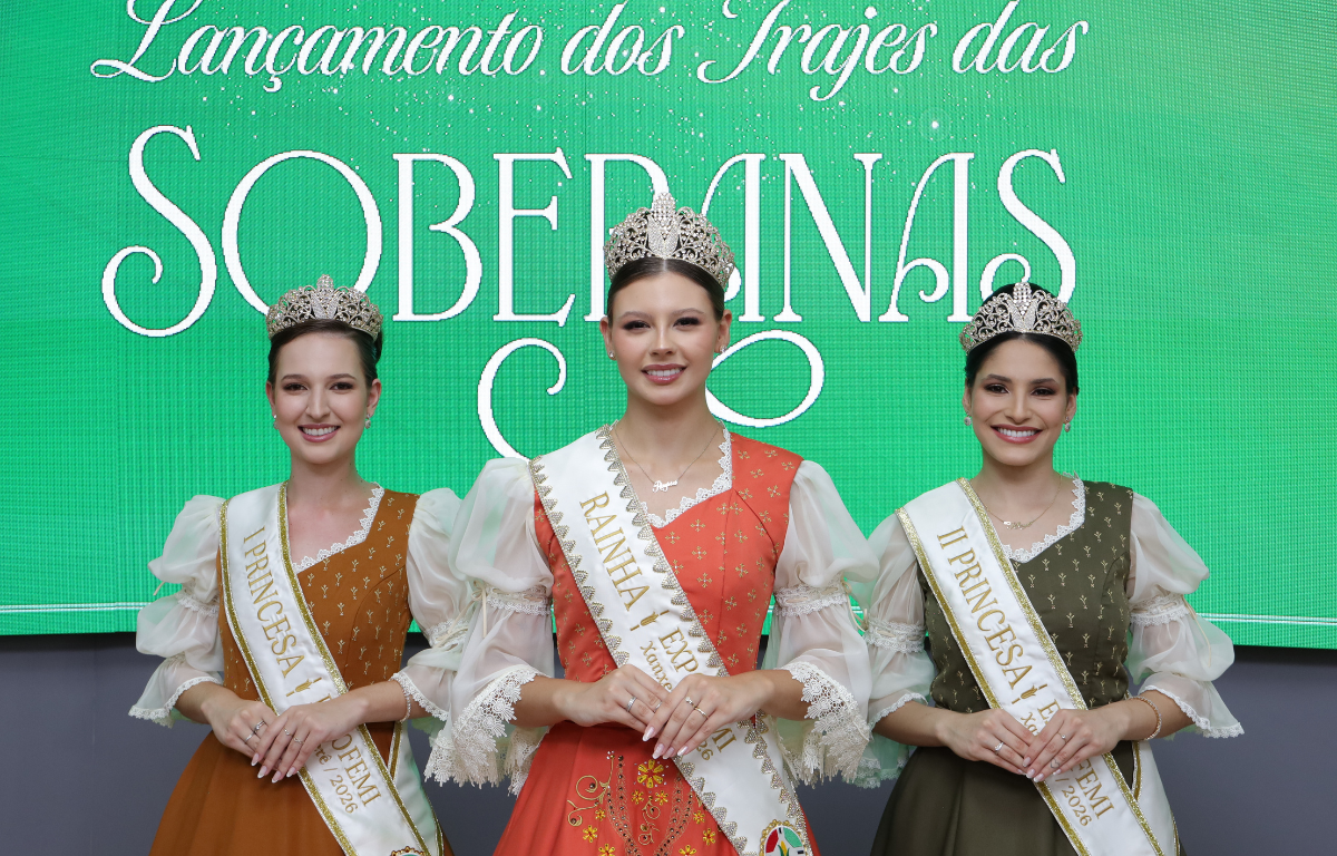 A rainha Rayssa Kemely Padilha, a I Princesa Nathalia Menegolla e a II Princesa Khrys Hellen Bordin de Lima desfilaram os trajes que passam a simbolizar oficialmente a identidade da edição 2026 do evento, juntamente com a Rainha da Melhor Idade, Ivanir Antônia Parizotto e Princesa, Sandra Regina Bento Gouveia.